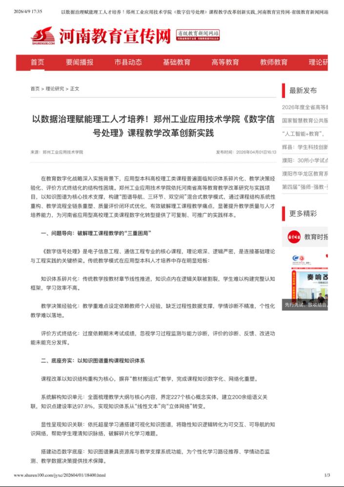 以数据治理赋能理工人才培养!郑州工业应用技术学院《数字信号处理》课程教学改革创新实践
