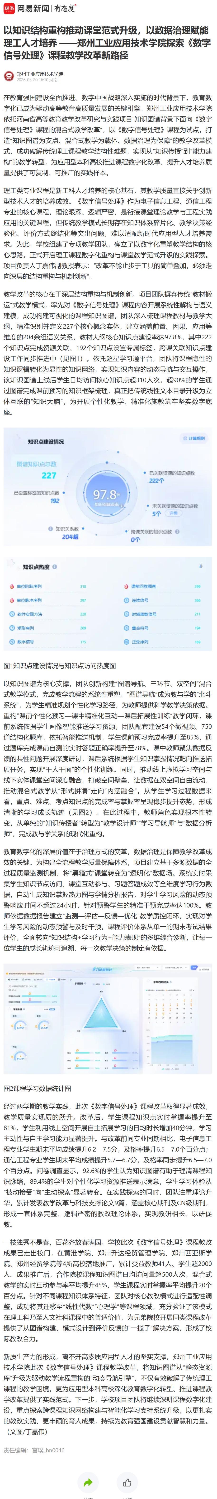 以知识结构重构推动课堂范式升级,以数据治理赋能理工人才培养 ——郑州工业应用技术学院探索《数字信号处理》课程教学改革新路径
