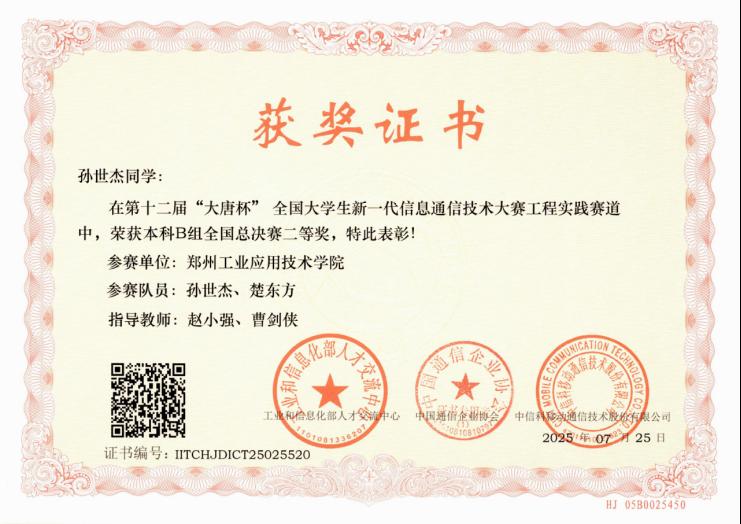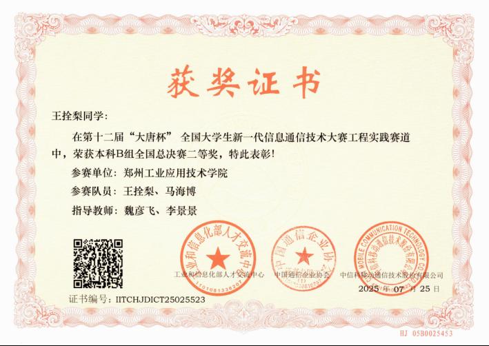 第十二届“大唐杯”全国大学生新一代信息通信技术大赛