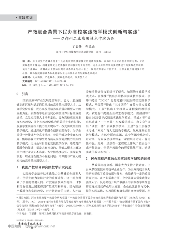 产教融合背景下民办高校实践教学模式创新与实践
